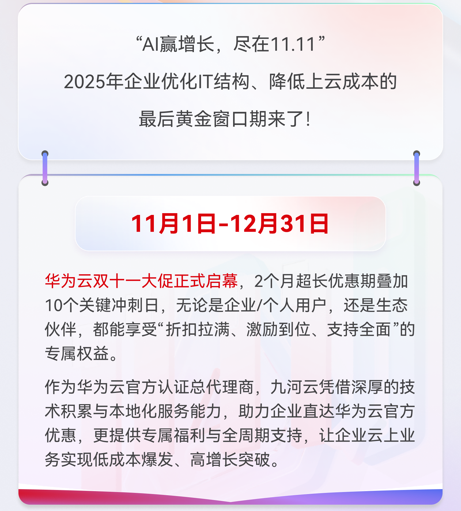 华为云双十一大促震撼开启!九河云总代加码助企业降本上云