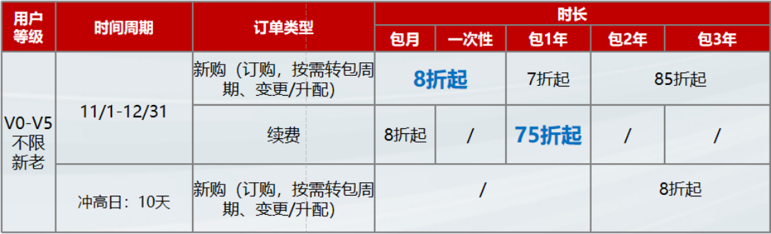 (3)冲刺日加码:10个冲刺日当天,新购、变更、升配部分包2年/3年最低8折起(8折叠加2/3年自动超低折扣,折上折实现超低商务)。